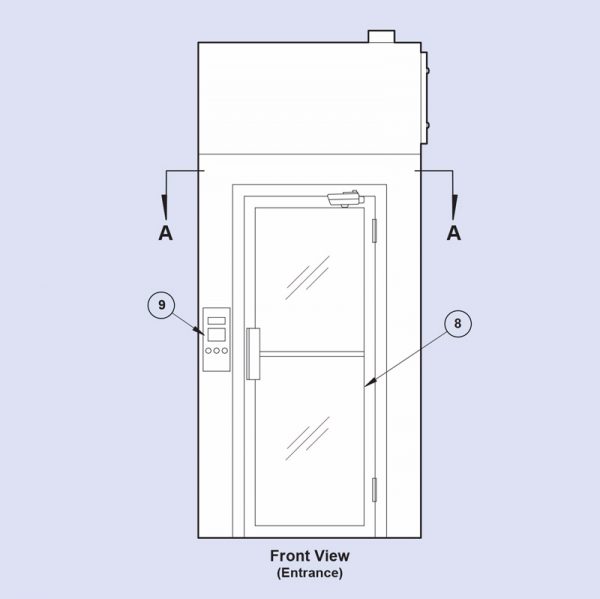 Doors are made of high quality anodized aluminum frame with 1/4 inch clear insert and push/pull hardware. The interlock system allows only one door at a time to be open and releases if the power fails.